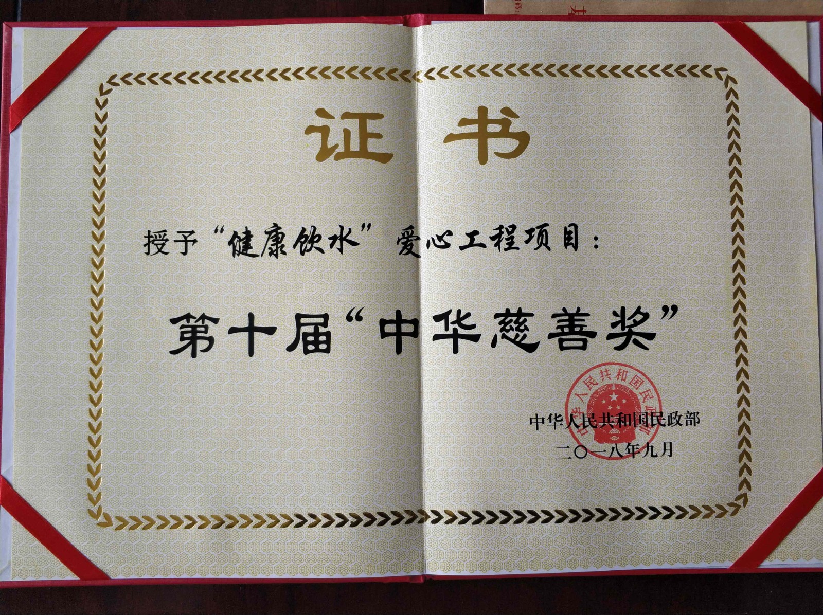 年09月,我基金会发起的“健康饮水”爱心工程项目,获得民政部第十届“中华慈善奖”称号。