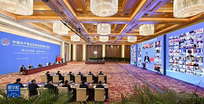 3月15日,中共中央总书记、国家主席习近平在北京出席中国共产党与世界政党高层对话会,并发表题为《携手同行现代化之路》的主旨讲话。(新华社记者 殷博古/摄)